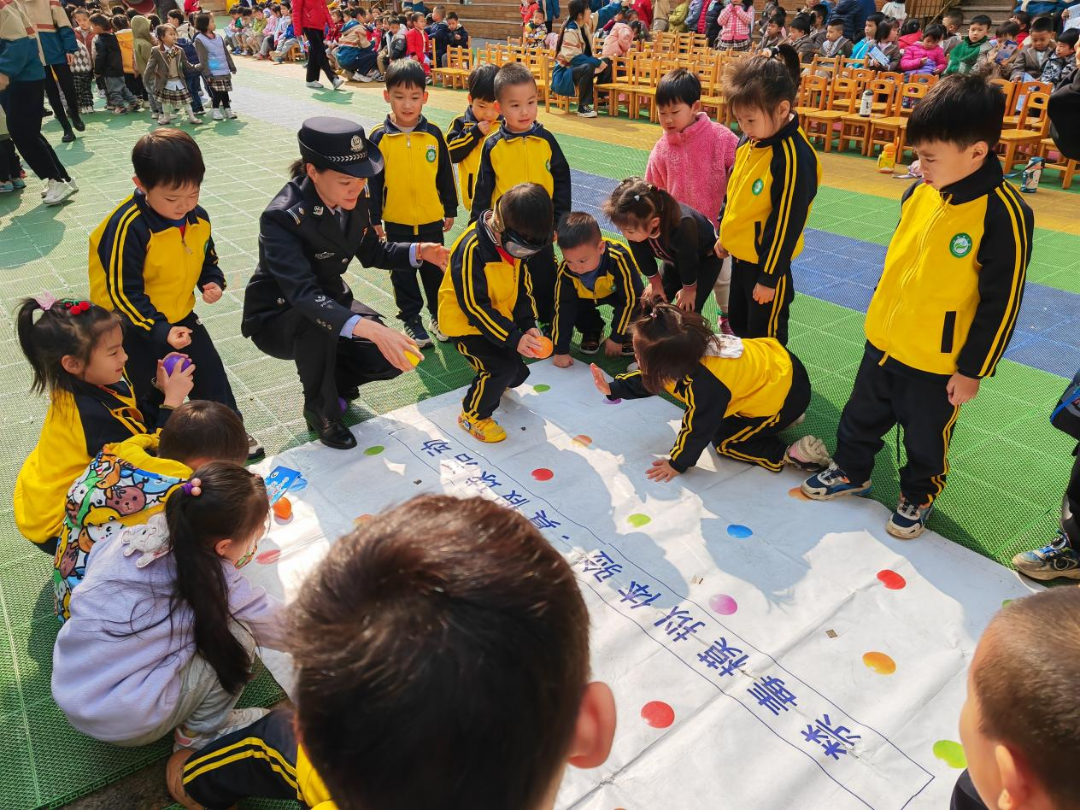 活动中,星湖派出所民警李警官向师生们描述了毒品的种类、危害,以及开展禁毒宣传工作的重要性等,生动形象地告诉师生们毒品给个人、家庭、社会带来的危害,提高师生的识毒、防毒、拒毒意识。并通过现场提问,带领小朋友参与模拟吸毒后的场景小游戏,现场观摩仿真毒品等互动形式,加深师生们对毒品知识的记忆。