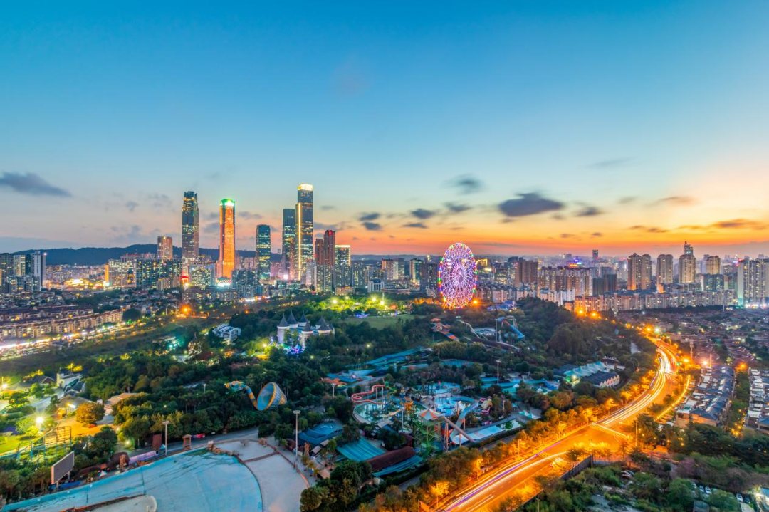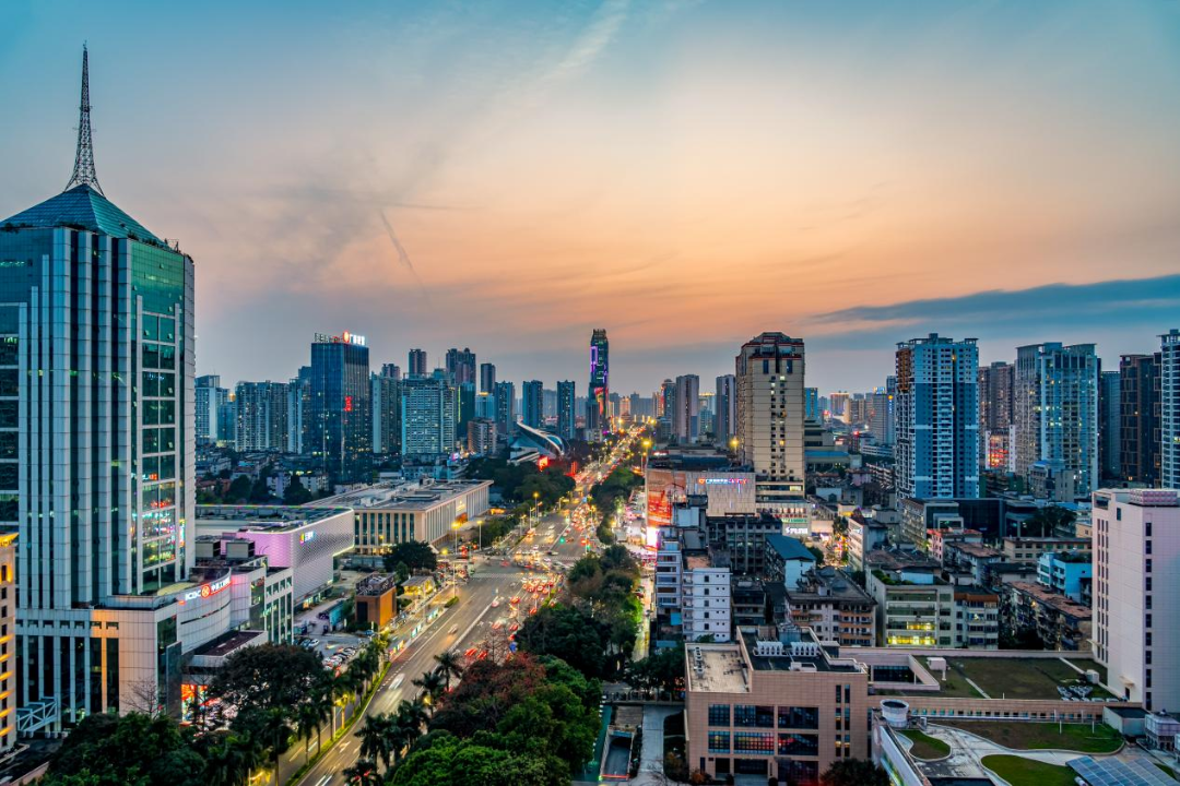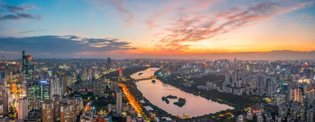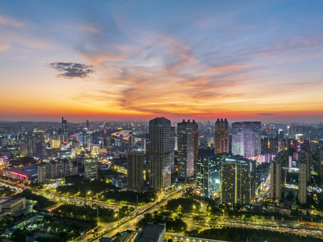霞光映照下的城市