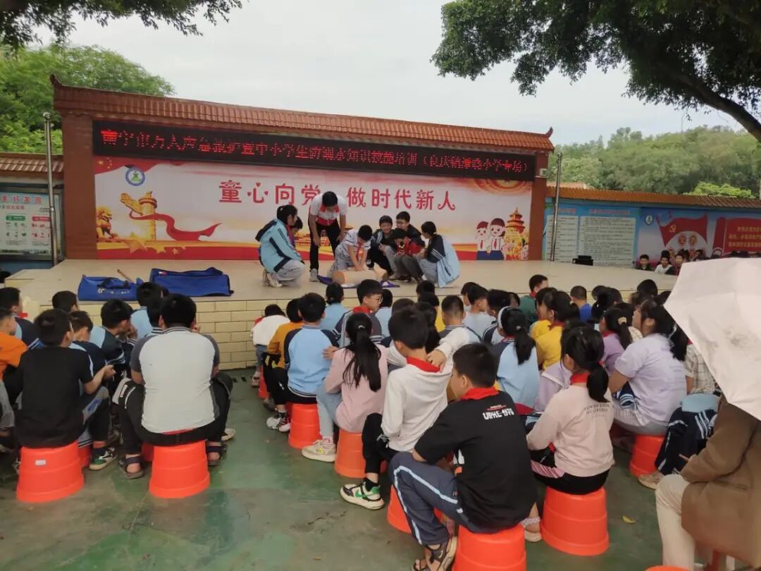 南宁市万人应急救护培训暨防溺水知识培训渌晓小学活动现场。