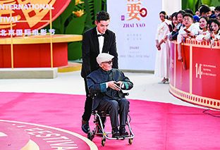 4 月18 日,演员游本昌(前)和胡歌亮相开幕红毯。新华社记者陈钟昊摄