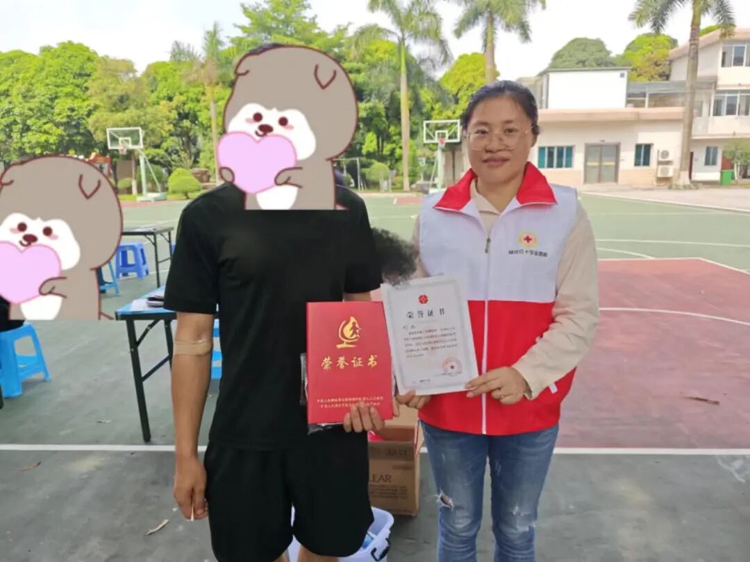良庆区红十字会工作人员和成功采样加入中国造血干细胞库志愿者合影。