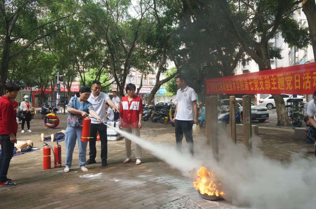 红十字培训师、广西安全工程职业技术学院马老师说道:“随着气温的逐渐升高,溺水事故进入高发期,我们今天到社区教居民防溺水知识、心肺复苏操作、灭火器使用注意事项,希望更多的人提高安全防范意识,学会急救知识。”