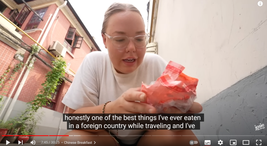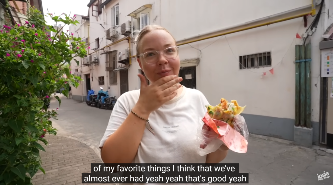 Josie在上海小弄堂里吃了一口煎饼,说,这是我走南闯北这么多年,在外国吃到过的最好吃的东西。