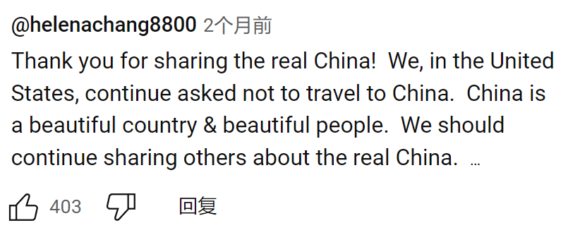 谢谢你让我们了解真实的中国,我们在美国一直被教导不要去中国。中国是一个美丽的国家,有着美好的人们,我们应该和大家继续分享真实的中国。