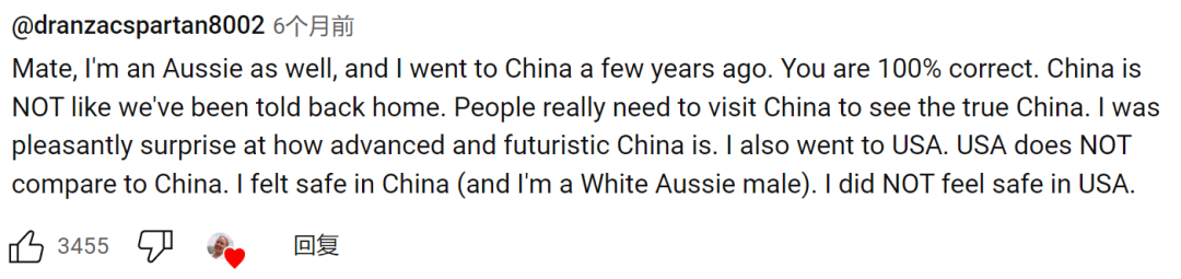 一些外国网友看了视频后也开始对比起中国和其他国家的差别。很多人都提到中国比其他地方安全。