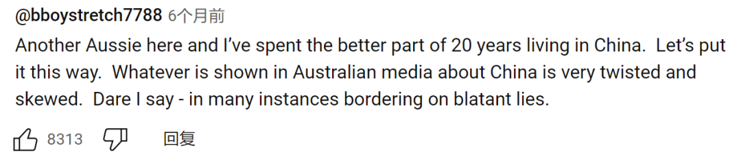 我也是澳大利亚人,我过去20年很多时间都生活在中国。让我这么说吧,澳媒对中国的报道是非常扭曲(twisted)和偏颇的(skewed)。很多甚至是明晃晃的谎言。