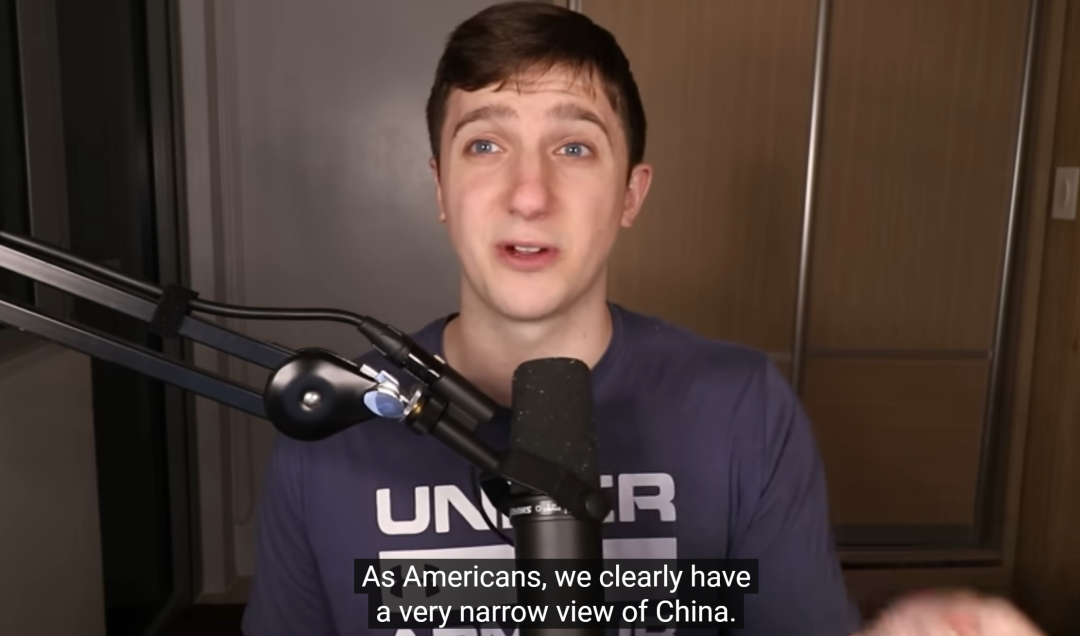 一位美国旅游博主在其频道TriFate Lifestyle中说,美国人看待中国的视角非常狭窄,他们在学校里几乎学不到中国相关的知识,美国版的中国文化甚至不是真实的,而来自媒体和政客传递的信息是:“中国在衰退,中国很危险,中国很邪恶。”(China is failing. China is dangerous. China is evil.)