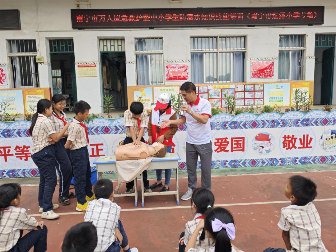 为提高学校师生的安全意识和自我保护能力,5月13日上午,良庆区红十字会组织志愿者队伍到南宁市坛泽小学开展南宁市万人应急救护暨中小学生防溺水知识技能培训活动,对248名师生进行培训,发放宣传资料200多份。