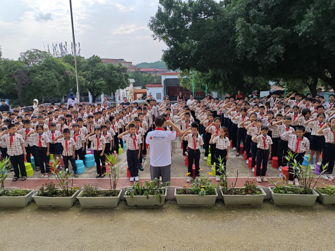 红十字应急救护师带领同学们进行《珍爱生命,预防溺水》宣誓。