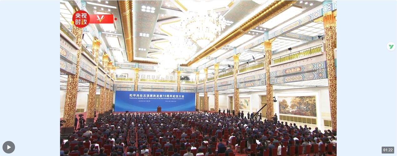 6月28日上午,和平共处五项原则发表70周年纪念大会在北京人民大会堂隆重举行。国家主席习近平出席纪念大会并发表题为《弘扬和平共处五项原则,携手构建人类命运共同体》的重要讲话。