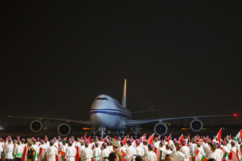 当地时间7月4日晚,国家主席习近平乘专机抵达杜尚别,应塔吉克斯坦共和国总统拉赫蒙邀请,对塔吉克斯坦进行国事访问。