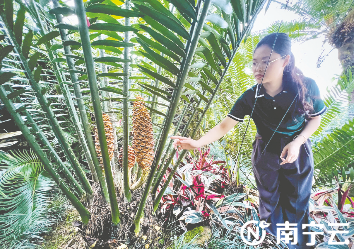 南宁市融媒体中心—南宁日报讯(记者 莫岚远)近日,在南宁青秀山风景区,在此“安家”8年的劳氏非洲铁,完全适应本地环境,首次开出了花。青秀山风景区于2016年引进了22种非洲铁属植物,劳氏非洲铁是该属第一个开花的种类。