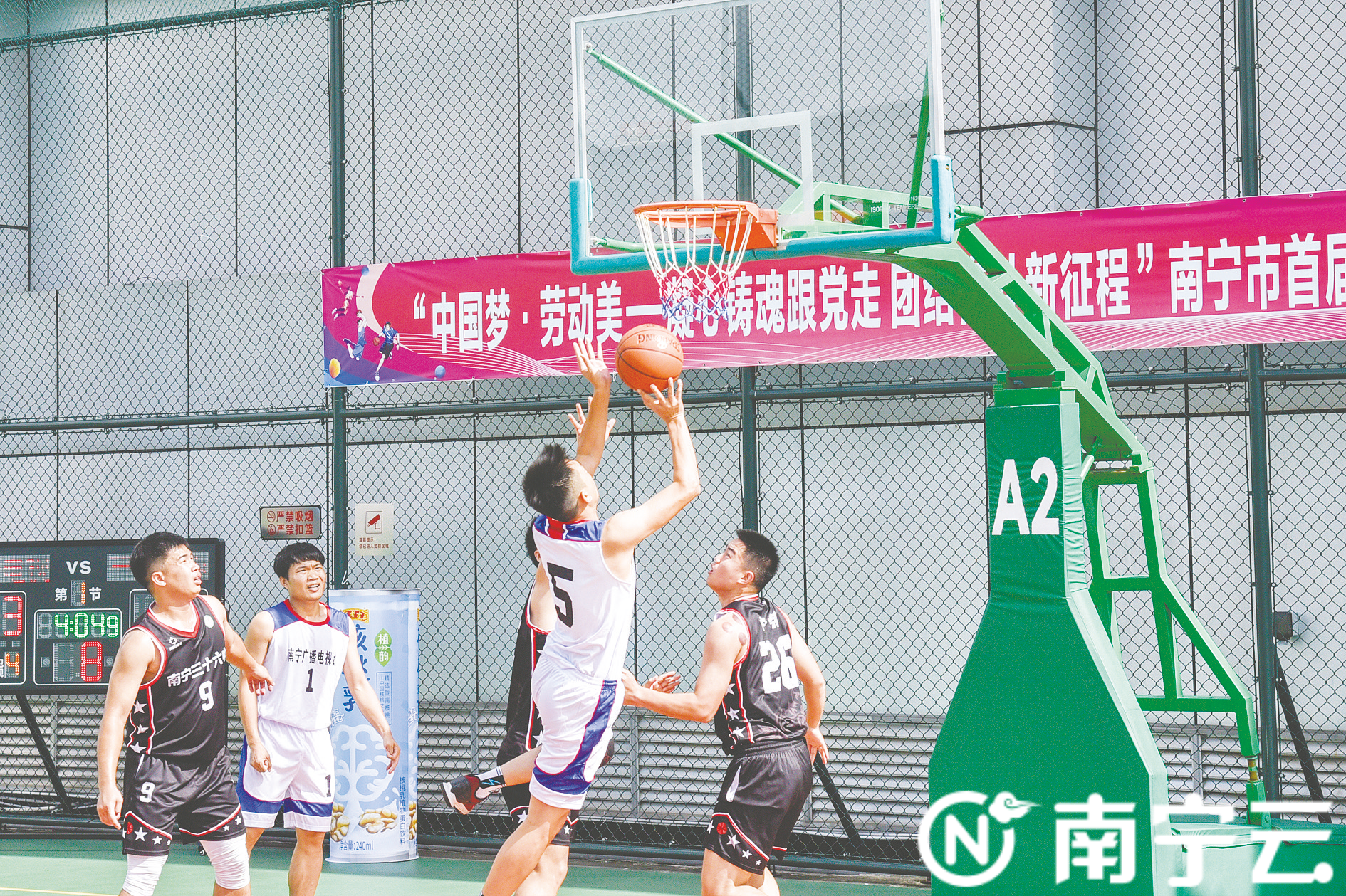 南宁市融媒体中心—南宁日报讯(记者 宾艺苑)7月6日,由南宁市总工会主办、南宁市工人文化宫承办的“中国梦·劳动美——凝心铸魂跟党走 团结奋斗新征程”南宁市首届职工三人篮球赛在南宁市工人文化宫球馆开赛。比赛为期两天,来自全市各级工会的32支代表队参与角逐。