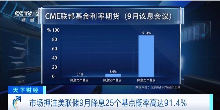 近期美国6月通胀数据放缓,加上美联储主席鲍威尔的鸽派言论,都让市场加强了对美联储即将降息的押注。CME联邦利率期货显示,现在市场已经完全消化了9月美联储会降息的预期,押注美联储会降息25个基点的概率高达91.4%,另有8.4%的概率甚至押注美联储会降息50个基点。