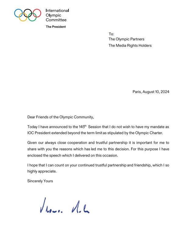 北京时间8月11日,国际奥委会宣布:现任国际奥委会主席巴赫宣布将不再连任。