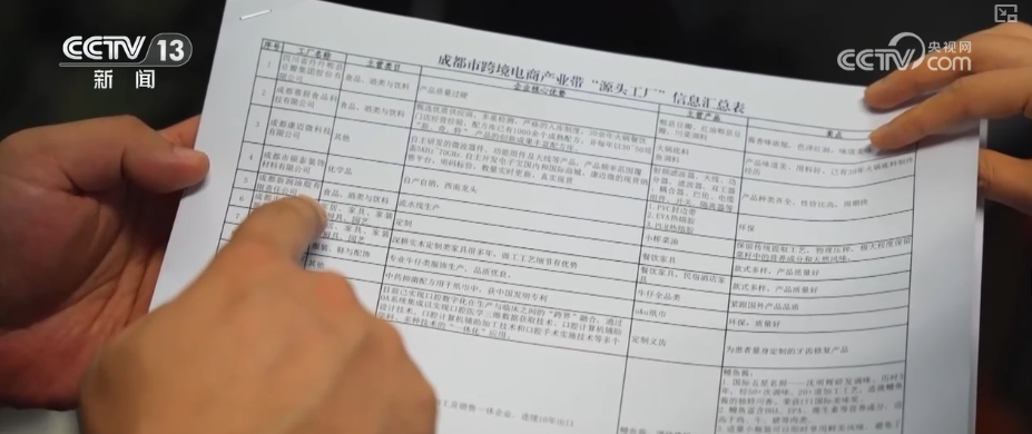 与此同时,当地还在加快推进“跨境电商+产业带出海”工作。在成都市商务局,记者拿到一份正在编制中的跨境电商“源头工厂”汇总表。目前,已汇集服装鞋靴、家具家居、川味调料等本地优势产业带的200多家工厂。