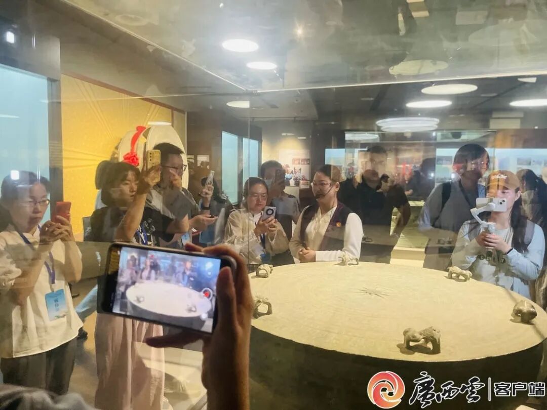 启动仪式后,采访团首站参观了广西民族博物馆,通过一幅幅照片、一件件文物,了解广西各民族交往交流交融的文化历史。