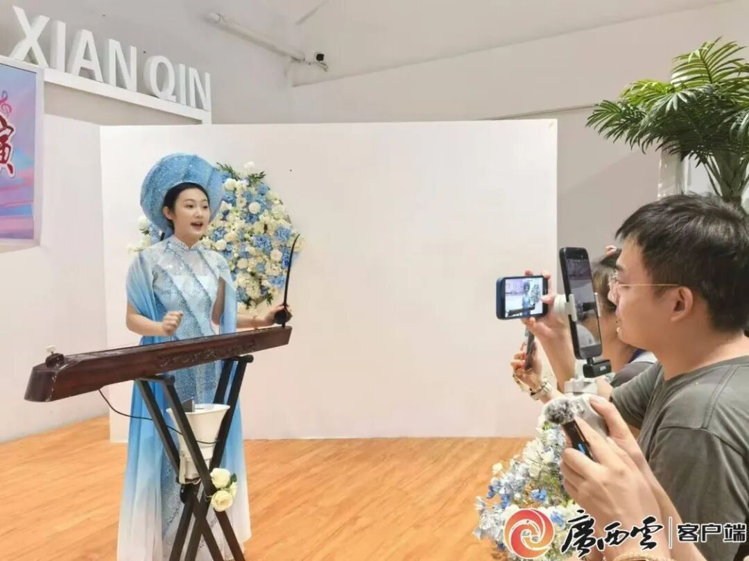 正在演奏的是非遗传承人赵霞,她手中的独弦琴是京族人民的特有乐器,只有一根弦,却能弹百种音,还可以演奏超过3个八度的音程。