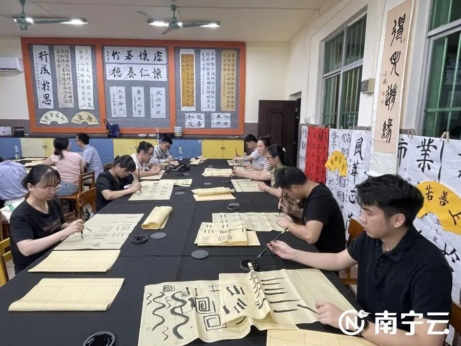 南宁青年夜校毛笔书法班。记者 黄思宁 摄
