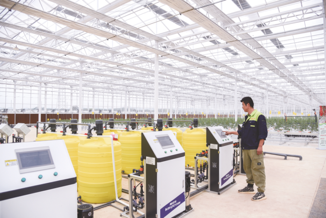 在刘圩镇现代设施蔬菜生产基地里,可视化智能水肥机等设备的投入使用大大提升基地管理效率。黄红锦 摄