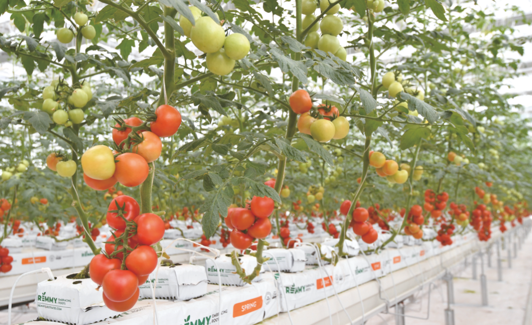 刘圩镇现代设施蔬菜生产基地的自动滴灌种植大棚里,西红柿已挂满枝头。黄红锦 摄