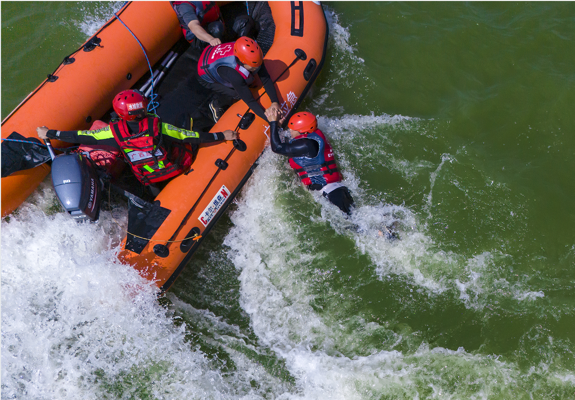 此次训练聚焦实战化、专业化,通过模拟真实救援场景,指导新旧队员熟练掌握水上救援的基本知识,重点围绕橡皮艇的拆装与使用、平跳式入水、活耳救援、回旋提拉、无动力翻船自救等核心科目展开针对性强化训练,全面提升复杂水域应急处置能力。同时,强化对新队员技能的传授,老队员在重温操舟、救援技能的同时,对新队员逐个项目培训,直到掌握基本技能要求。