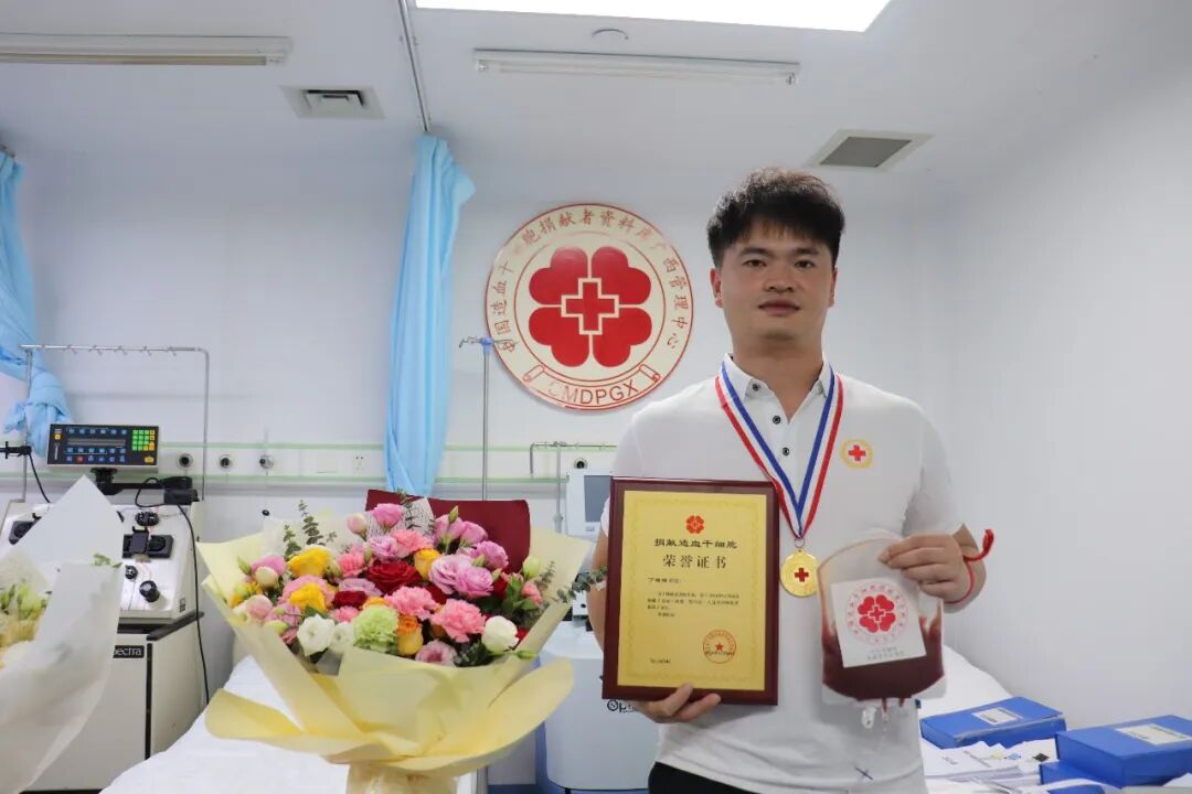 大学期间,一堂血液系统疾病课程让小丁深深明白,造血干细胞移植是许多重症血液病患者的最后希望。2022年疫情期间,他在献血现场加入中国造血干细胞捐献者资料库。至今,小丁已无偿献血13次,累计达5200ml,荣获南宁市无偿献血荣誉卡及“南宁市一星级献血之星”称号。