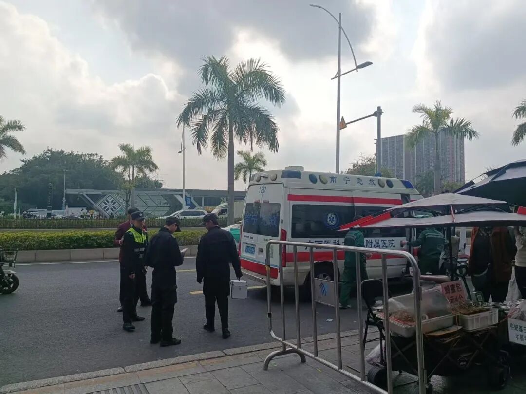 约十余分钟后,广西医科大学第二附属医院急救车赶到现场。熊圆圆向医护人员清晰交接病情后,协助将老人平稳转移至担架,送往医院进行进一步救治。