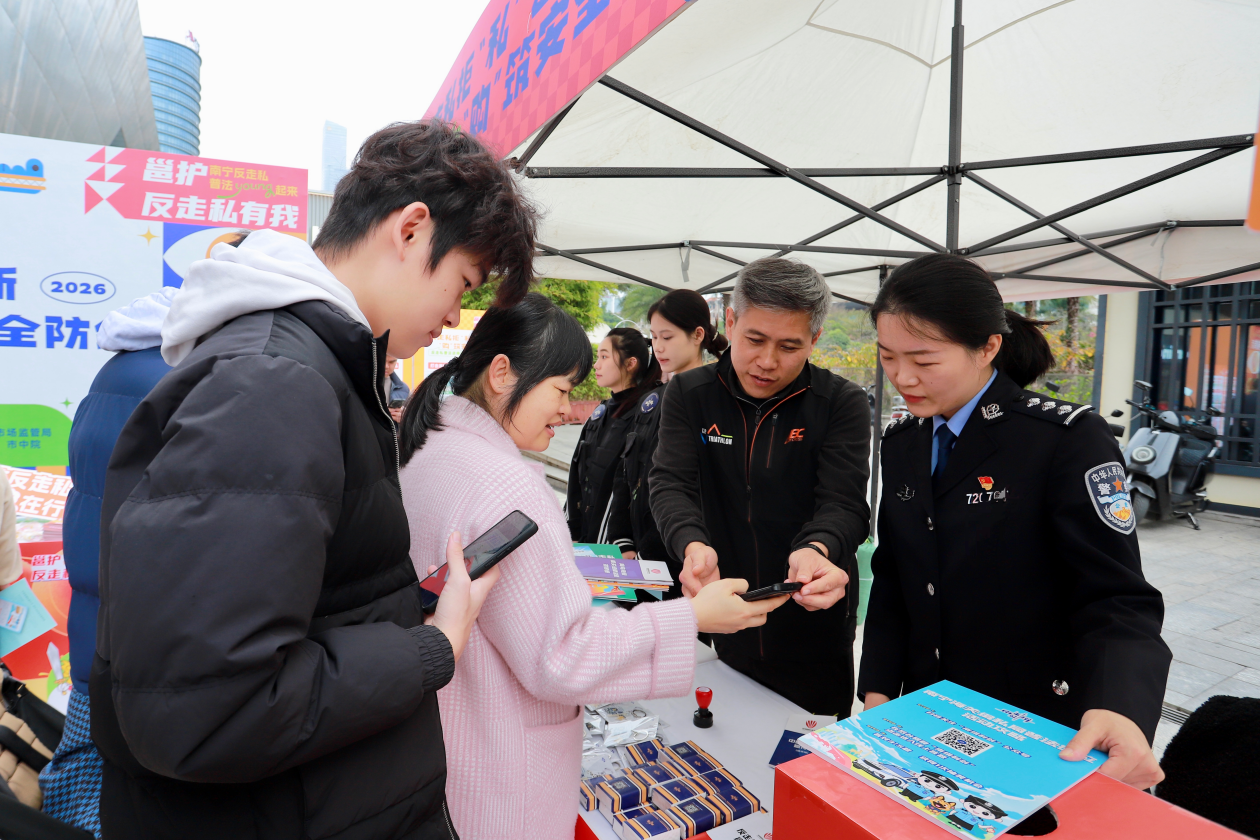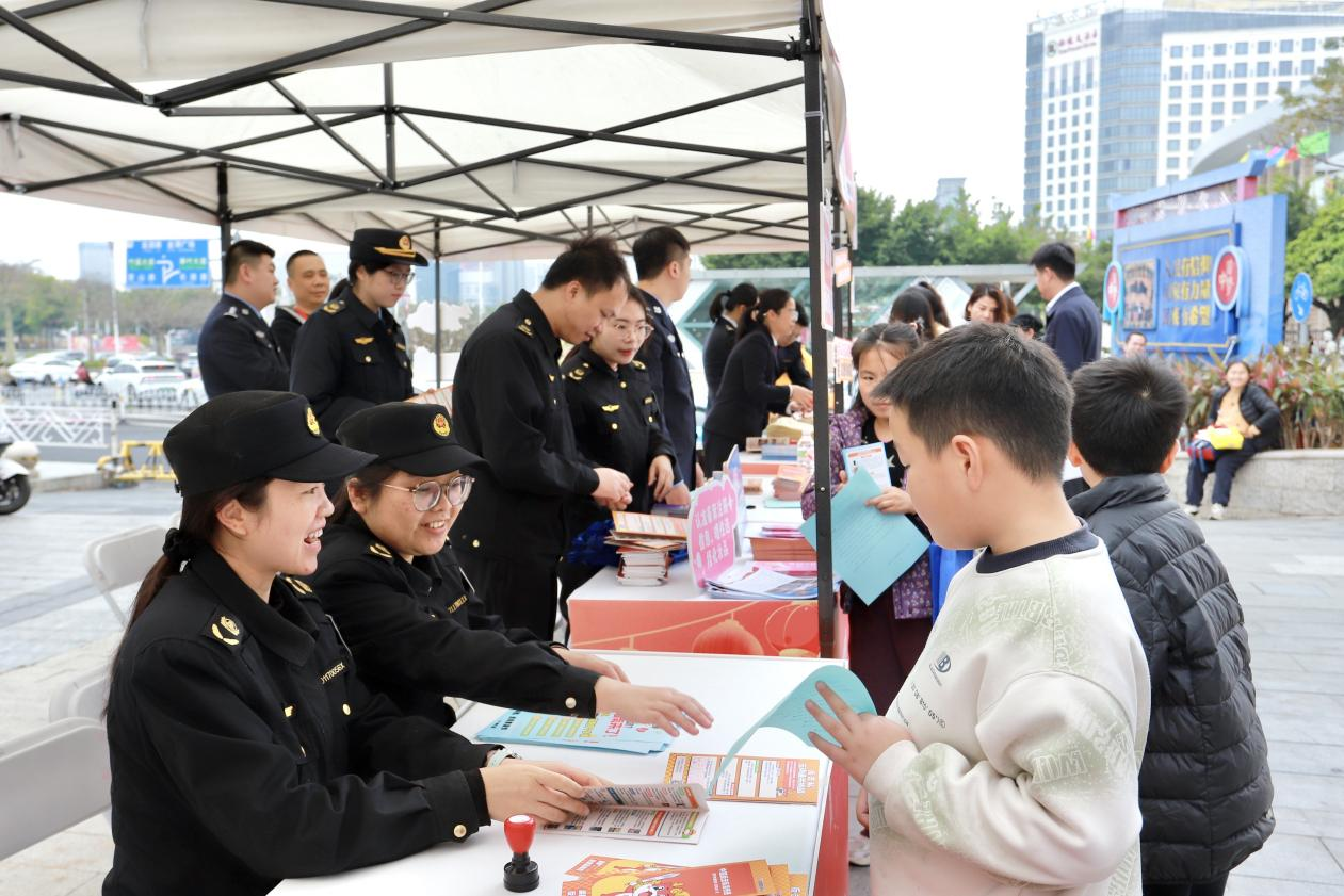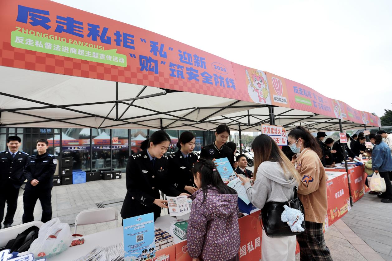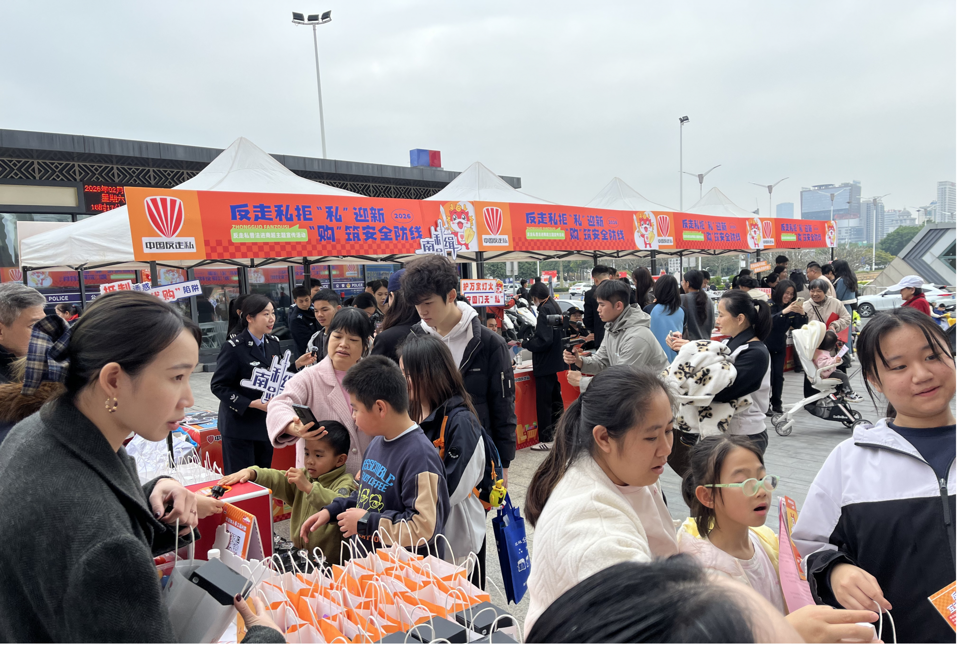 为更好地应对走私手段日益隐蔽化、涉案群体年轻化、跨境贸易复杂化的新形势,2月7日,南宁市商务局(打私办)联合南宁海关缉私局、市市场监管局、市公安局、市检察院、市中院、市交通局、市烟草局等单位,在会展航洋城开展反走私拒“私”迎新 “购”筑安全防线——反走私普法进商超主题宣传活动。本次活动旨在普及反走私法律法规与常识,加深消费者对走私的危害认知,增强消费者主动抵制、拒绝参与的意愿。