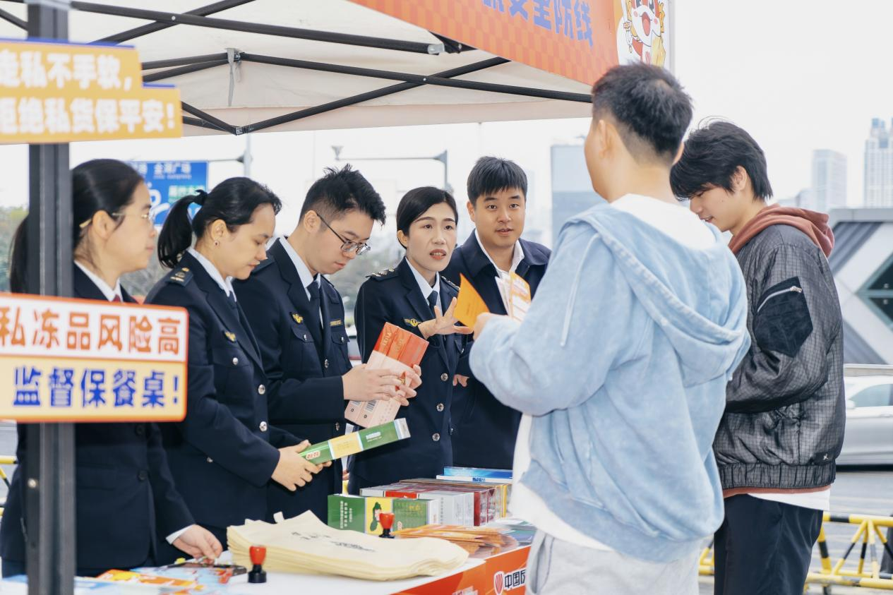 活动当天现场人头攒动,气氛热烈。反走私互动情景剧展演吸引了不少消费者驻足观看,演员们生动演绎的走私案例,让在场消费者代入演出情景,通过双向互动直观认识走私危害,有效避免踏入“套代购”陷阱。现场还准备了图文并茂、“干货满满”的反走私知识宣传展板和宣传折页,让消费者更好地了解“套代购”、冻品、毒品走私和出入境携带物品规定等相关法律法规,了解更多反走私的方法和途径。