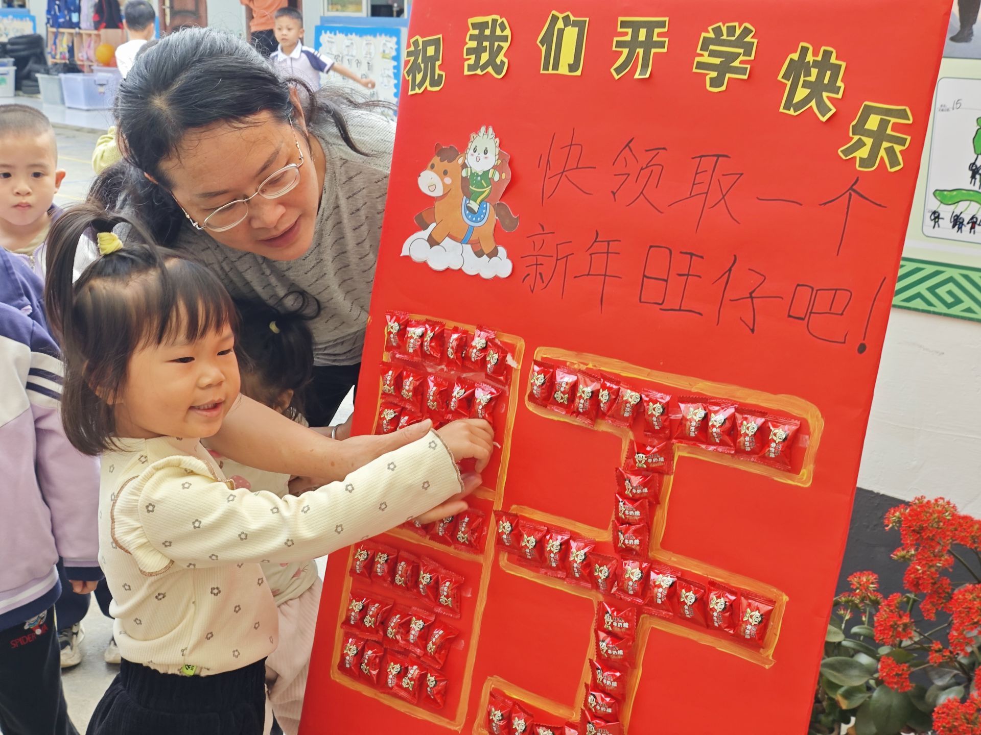 送上开学礼。莫秋 摄