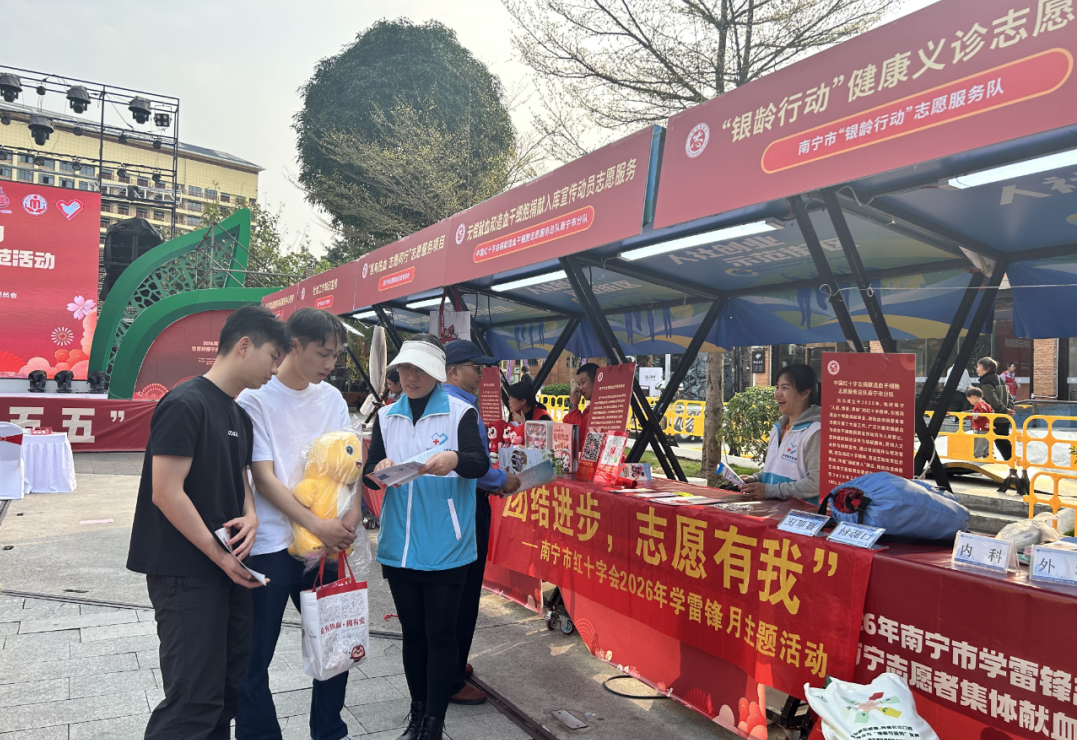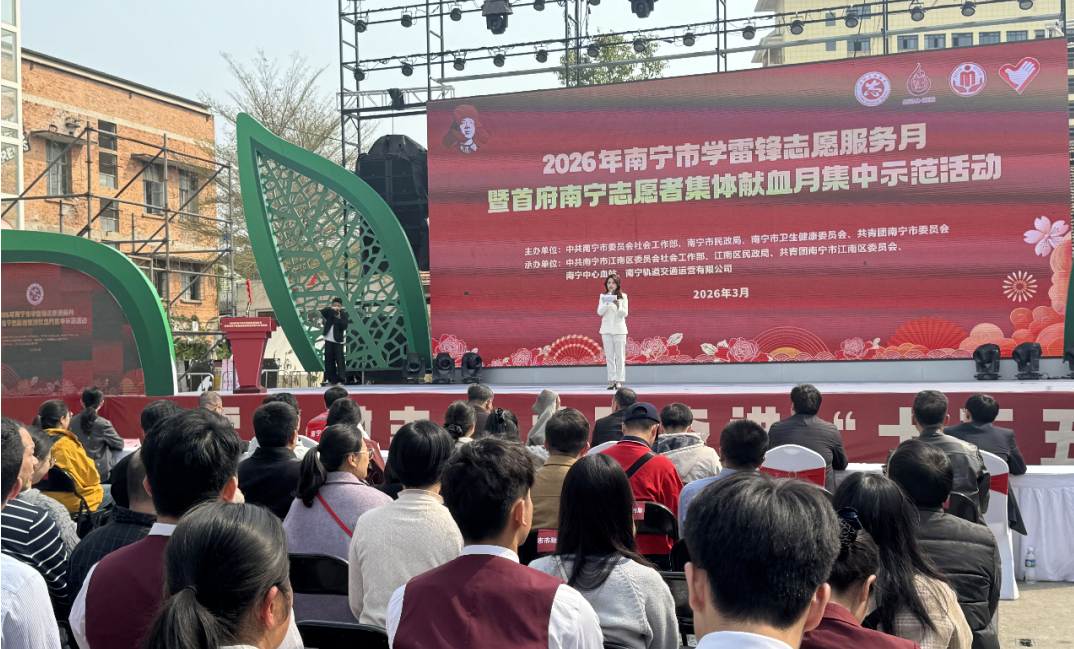 为大力弘扬雷锋精神,践行志愿服务初心,3月4日,2026年南宁市学雷锋志愿服务月暨首府南宁志愿者集体献血月集中示范活动在百益上河城开展。活动现场人头攒动、暖意融融,南宁市红十字会工作人员和志愿者们用热情暖心服务向社会传递向善向上的正能量,让学雷锋的热潮在春日里持续涌动。