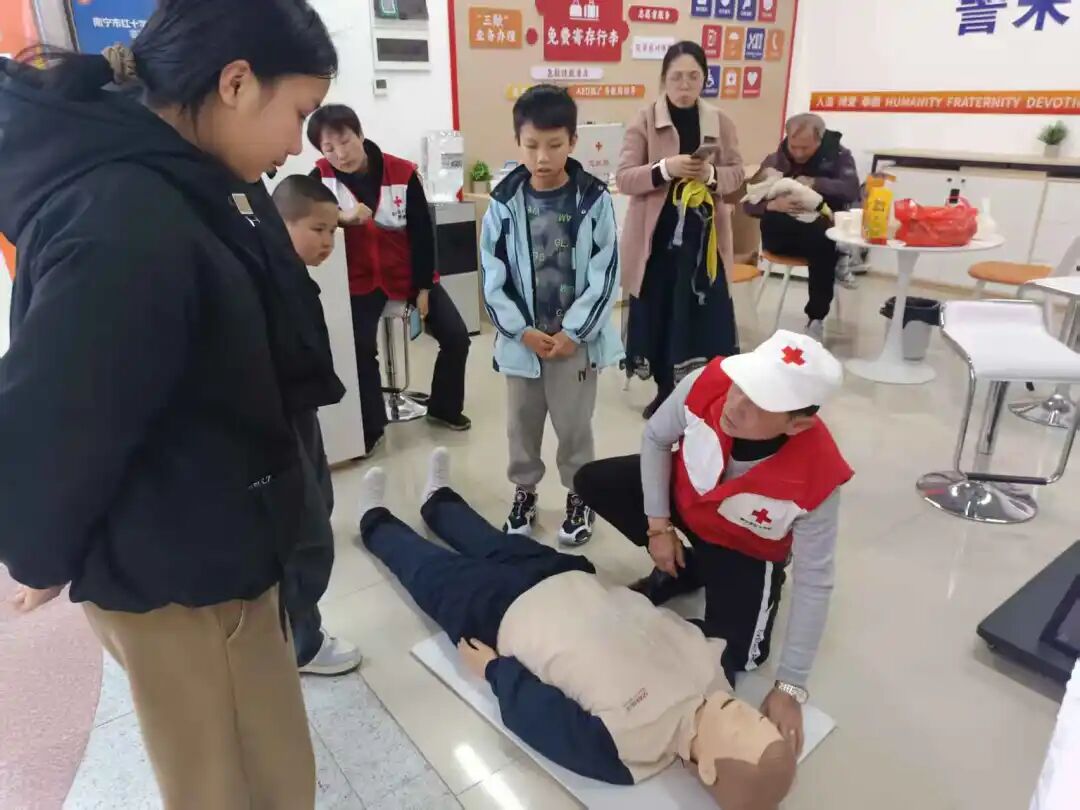 驿站同步发挥公益科普与应急保障作用,不少市民趁游玩间隙主动咨询急救知识,志愿者现场耐心讲解心肺复苏、AED使用等实用技巧,并手把手指导实操,让大家在休闲之余收获急救技能。针对地下商业街人员密集的特点,志愿者常态化巡逻提醒市民看护孩童、保管财物,备齐急救箱、AED等应急物资,高效处置物品遗失、轻微磕碰等突发情况,为马年新春夜市筑牢平安防线。