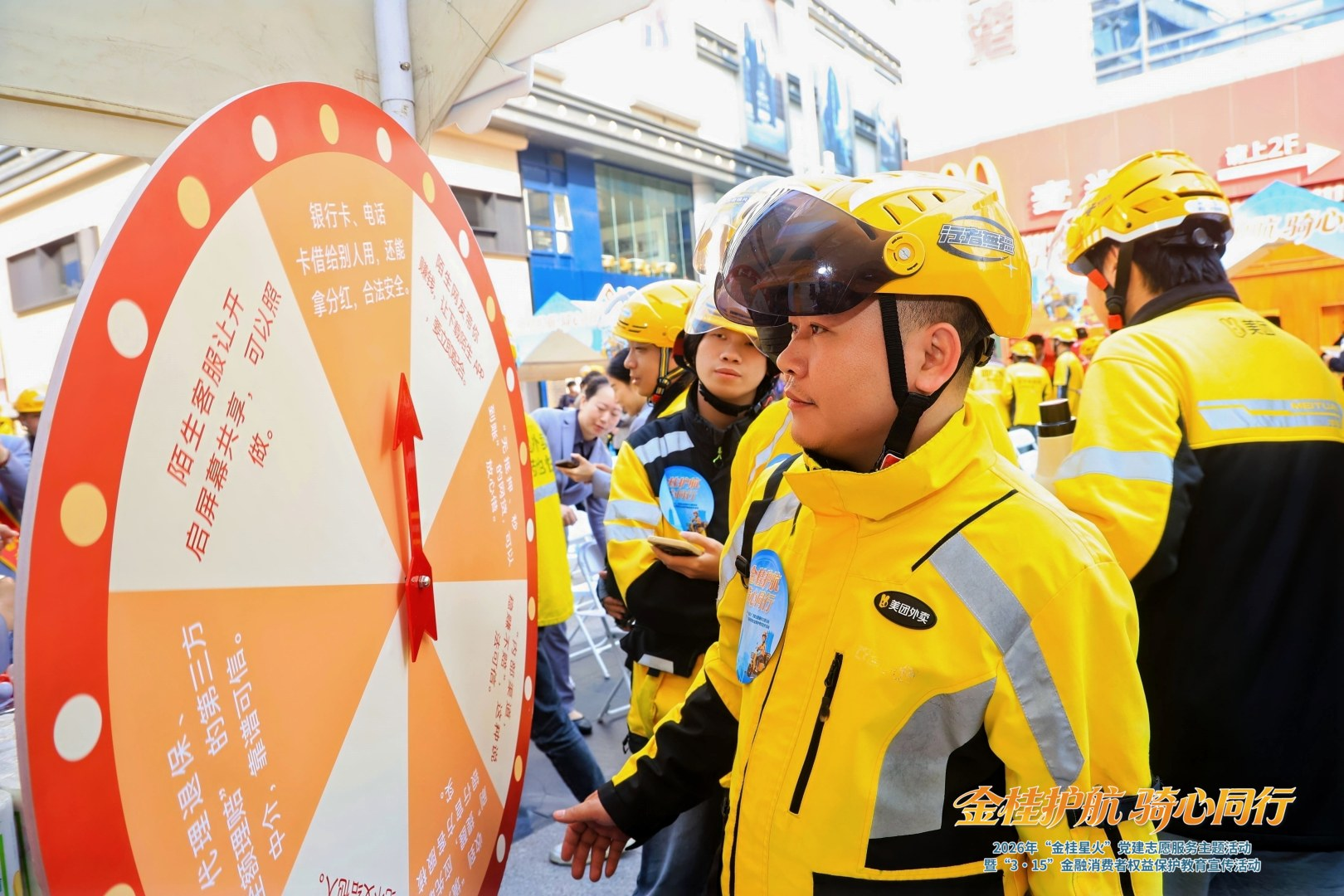 2026年3月13日上午,“金桂护航 骑心同行”2026年“金桂星火”党建志愿服务活动启动仪式暨“3·15”金融消费者权益保护教育宣传活动在南宁市朝阳印象城成功举办。本次活动由国家金融监督管理总局广西监管局指导,广西金融团工委、广西银行业协会、南宁市公安局兴宁分局主办,中国农业银行广西区分行、中国银行广西区分行、浦发银行南宁分行、中信银行南宁分行、招商银行南宁分行、平安银行南宁分行、广西北部湾银行与美团(广西)联合承办,聚焦外卖骑手等“两司两员”新就业群体,以党建为引领,融合多方资源,织密立体化金融消费安全守护网,为城市一线劳动者送上暖心金融保障与全方位关怀。