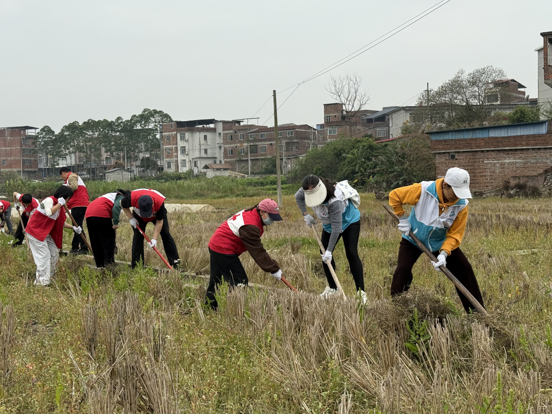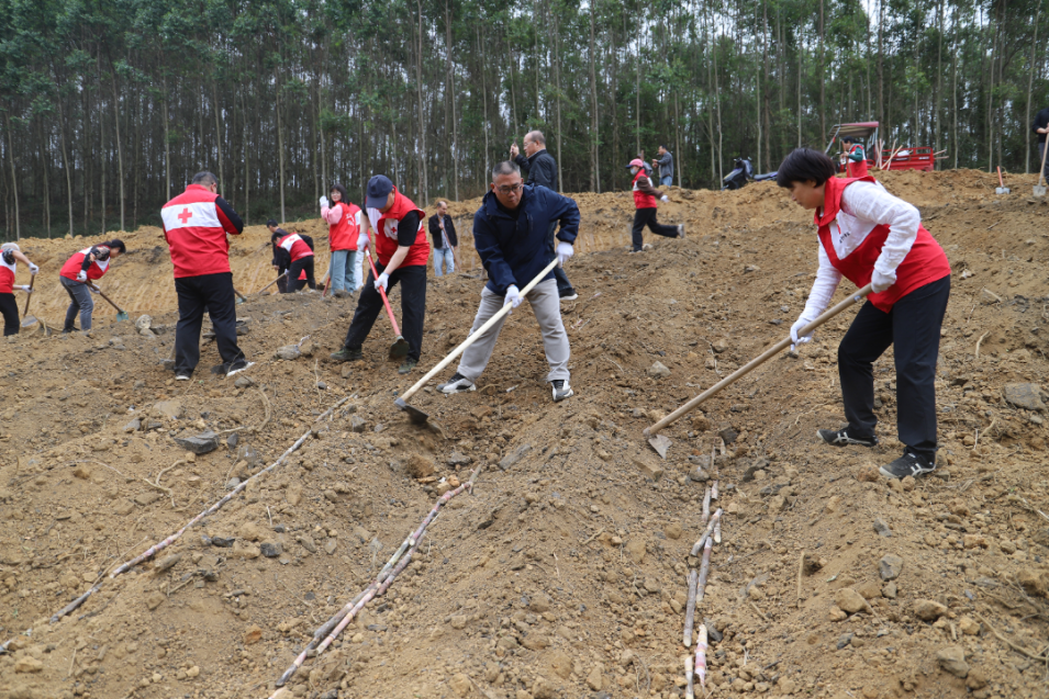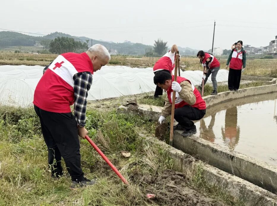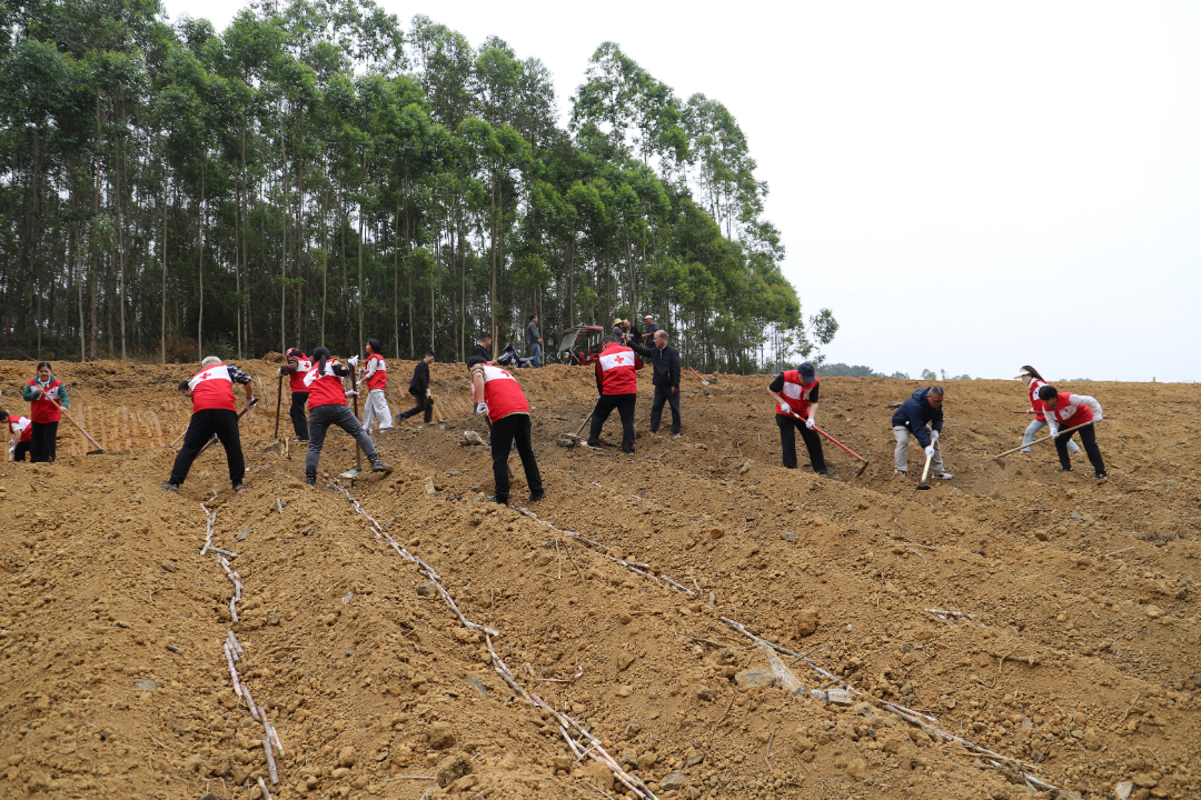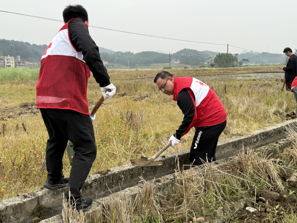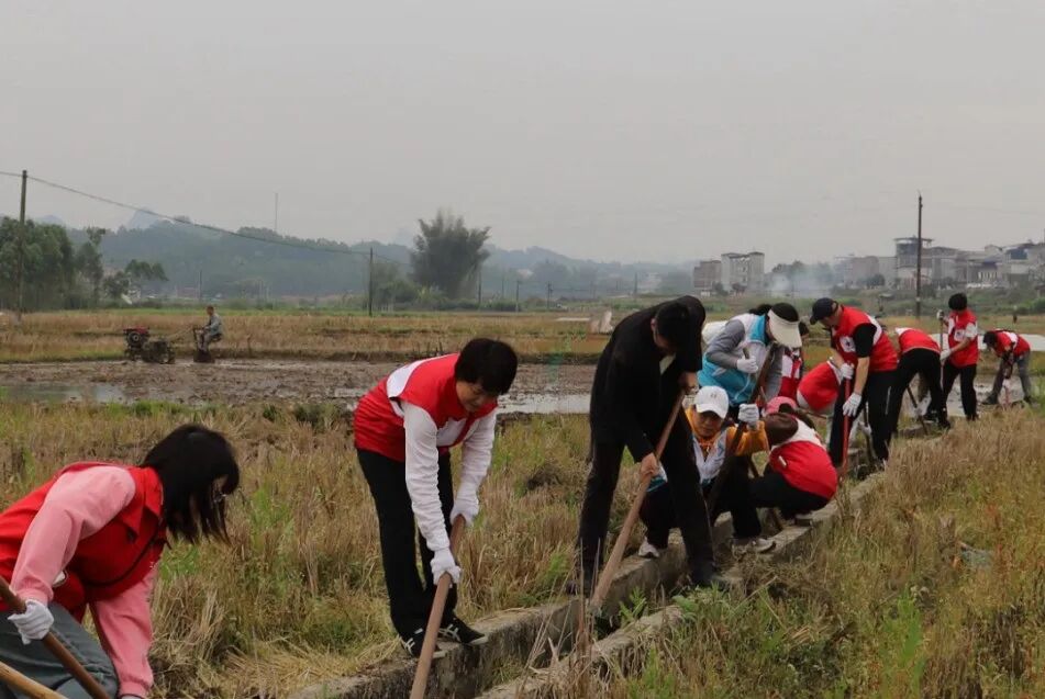 3月20日,南宁市红十字会机关党支部组织全体党员干部职工和红十字志愿者代表,前往上林县乔贤镇龙头村,开展“践行正确政绩观 助农帮扶促振兴”主题党日活动。市红十字会机关党员干部和志愿者以及乡镇干部、龙头村驻村工作队,来到田间地头一同助力村民春耕春种、修缮农村水利设施、开展便民服务。