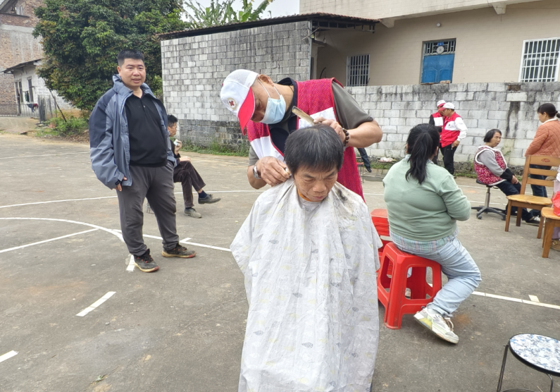 正值农历二月二“龙抬头”,在板樊庄篮球场上,红十字志愿者们还为村民提供了免费理发、磨刀磨具等便民服务,将传统习俗与志愿服务相结合,贴心的举措赢得了村民们的一致好评。