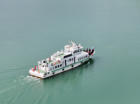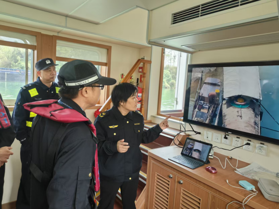 执法船只在江面上展开巡查。