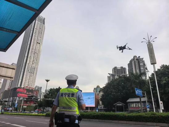 南宁交警启用无人机精准整治商圈违法停车乱象