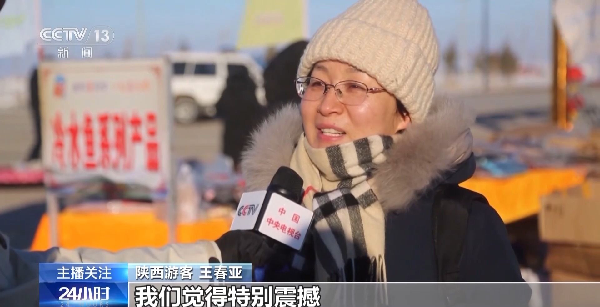 陕西游客 王春亚:我们这一次是专门来看冬捕节的。鱼从冰层里被拖出来的时候,我们觉得特别震撼,所以专门过来也是想买一条鱼。因为马上要过年了,也是希望能讨一个好彩头,希望大家都能够年年有余。