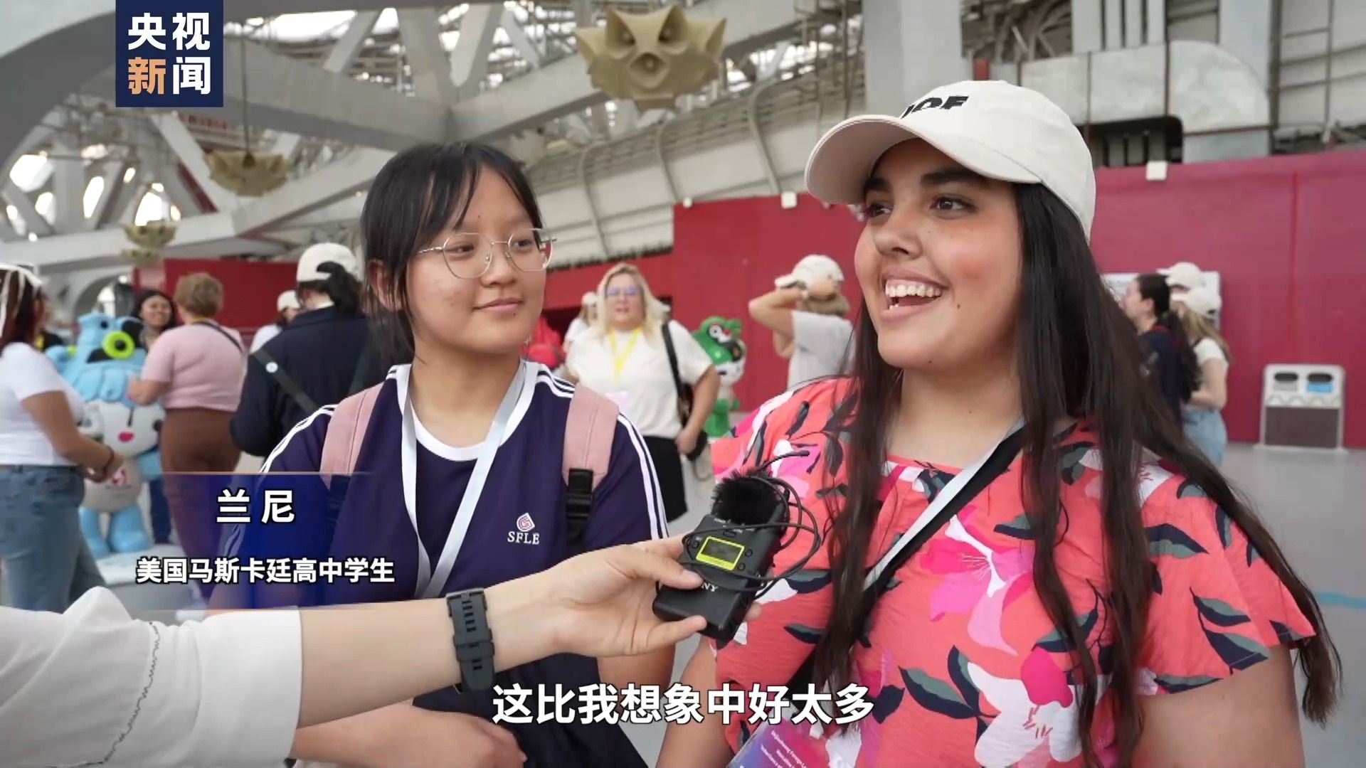 美国马斯卡廷高中学生 兰尼:来之前我知道中国历史悠久,到这就像做梦,这比我想象中好太多。我期待交到很多中国朋友,而且我已经交到了。鸟巢是2008年举办奥运会的地方,我也是2008年出生的,很高兴能亲身来体验。