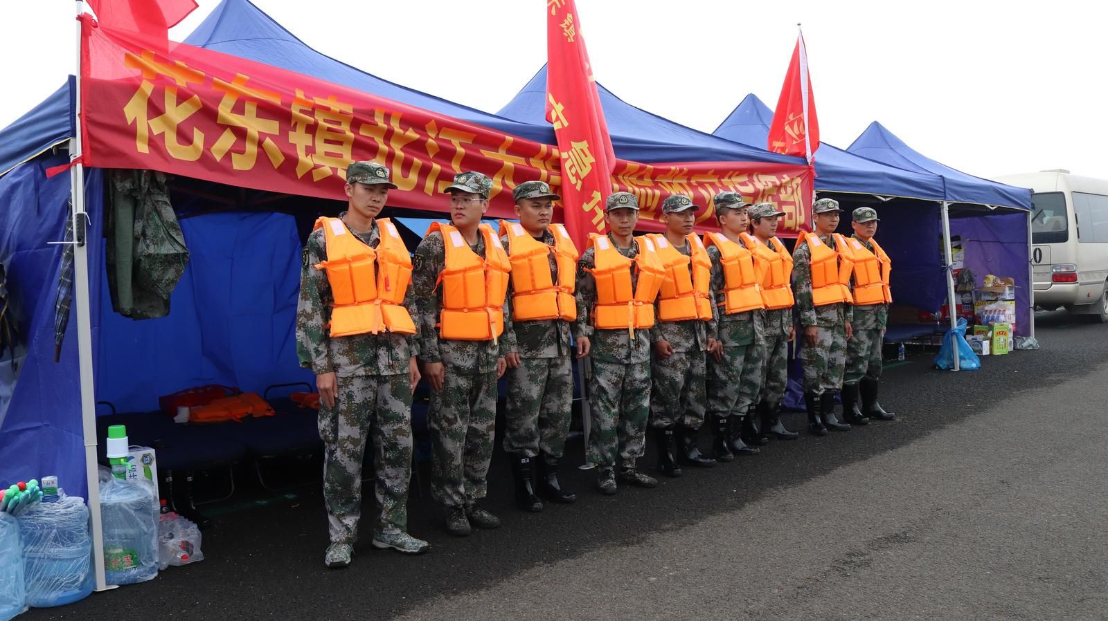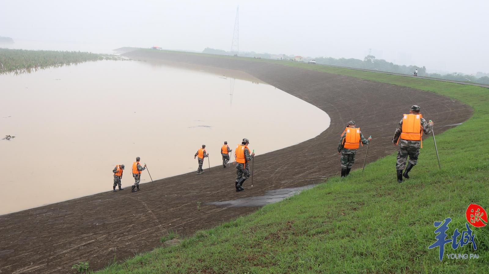“我们花都区花东镇巡堤小分队负责的堤段为600米,每隔2个小时巡逻一次。”来自花都区花东镇武装部的王志镖是其所在小分队的队长,该队10人均为退伍军人。王志镖介绍:“一个长竿、一套救生衣及雨衣就是我们的装备。巡堤的过程中,我们需要用长竿敲击坝体,查看坝体上是否有渗漏、漩涡、管涌、裂缝、崩塌等隐患。目前暂未发现,如果排查出隐患,我们要及时上报指挥部。”